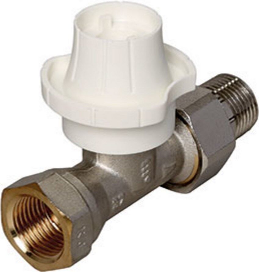 Ausführung des Thermostatventil in gerader (Durchgang) Ausführung zum Einbau in den Heizkörpervorlauf, DIN 3841-D, Material Rotguss mattvernickelt, Betriebsdruck bis PN 10, Universalanschluss mit Muffengewinde 1/2″ nach DIN